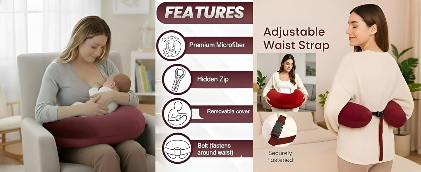 Breastfeeding Nurshing Pillow | Comfortable Feeding for Mom & Baby | Cradles The Baby Close to The Mother’s Body | Adjustable Height | Washable Cover