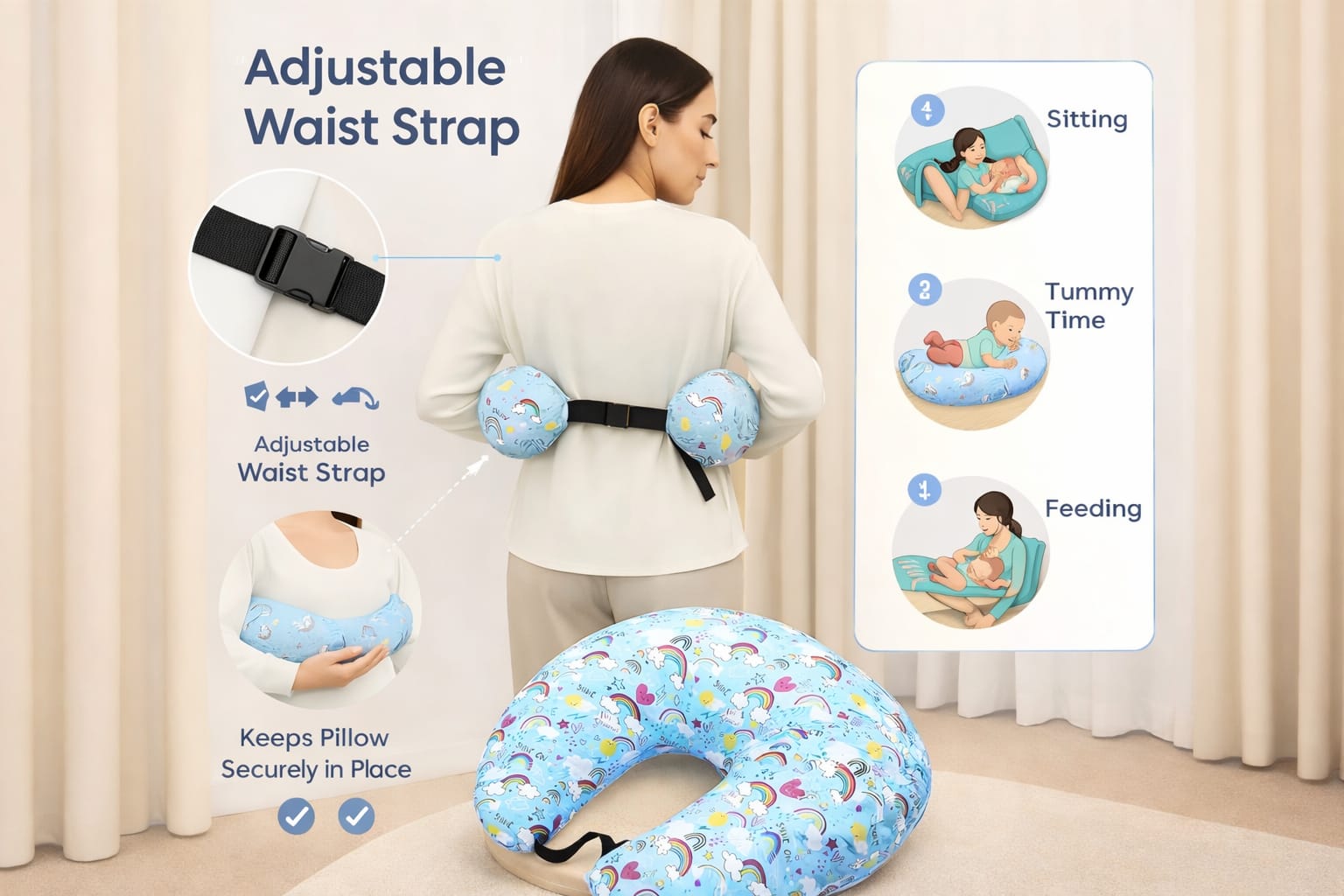 Breastfeeding Nurshing Pillow | Comfortable Feeding for Mom & Baby | Cradles The Baby Close to The Mother’s Body | Adjustable Height | Washable Cover