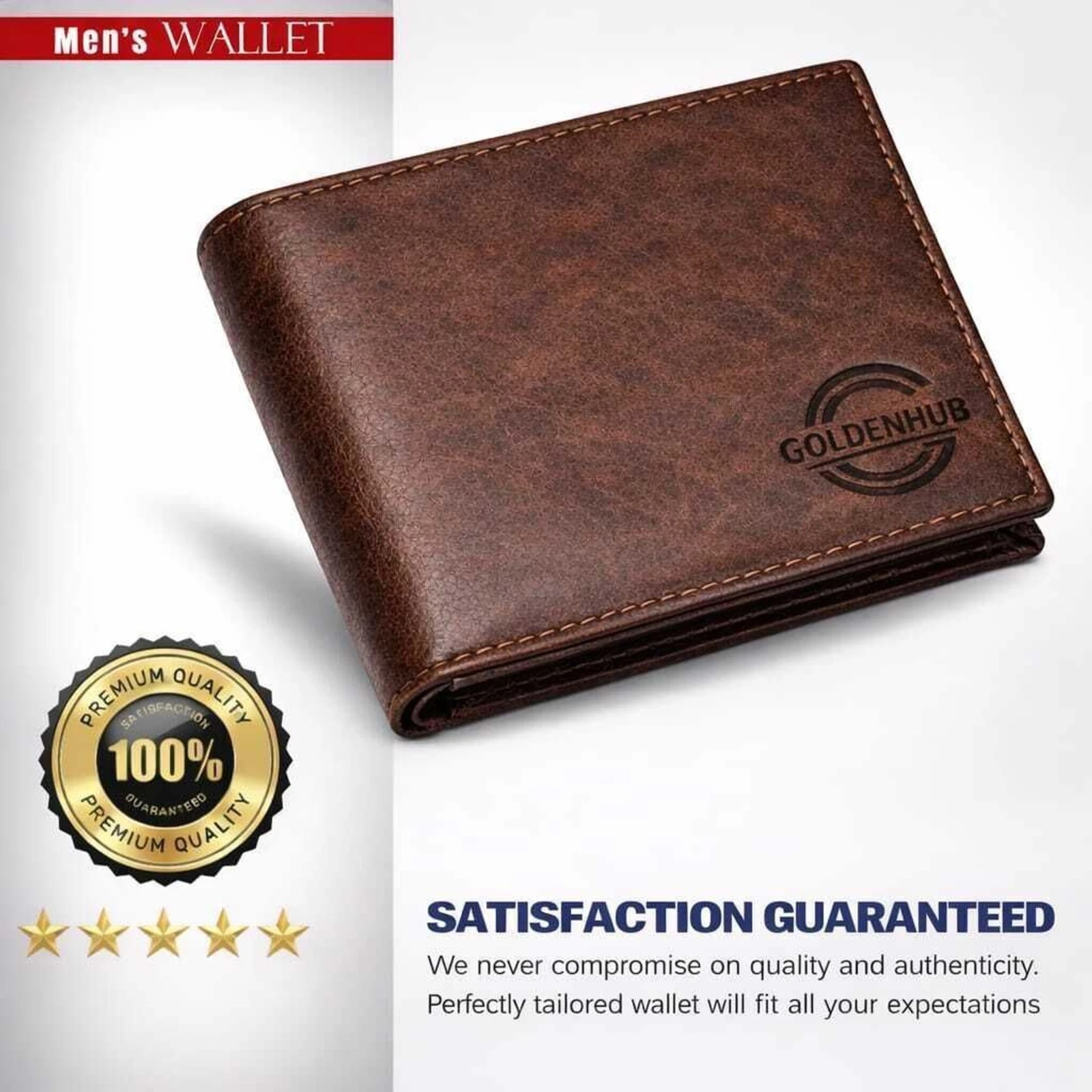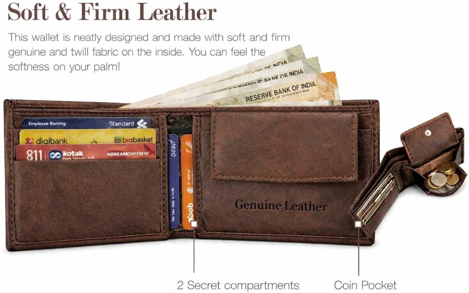 Goldenhub Genuine Leather Wallet for Men | Soft & Firm Leather | Multiple Card Slots | Coin Pocket | 2 Secret Compartments | Stylish & Durable Men’s Wallet- Brown