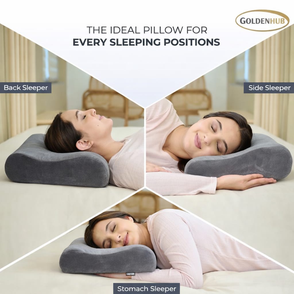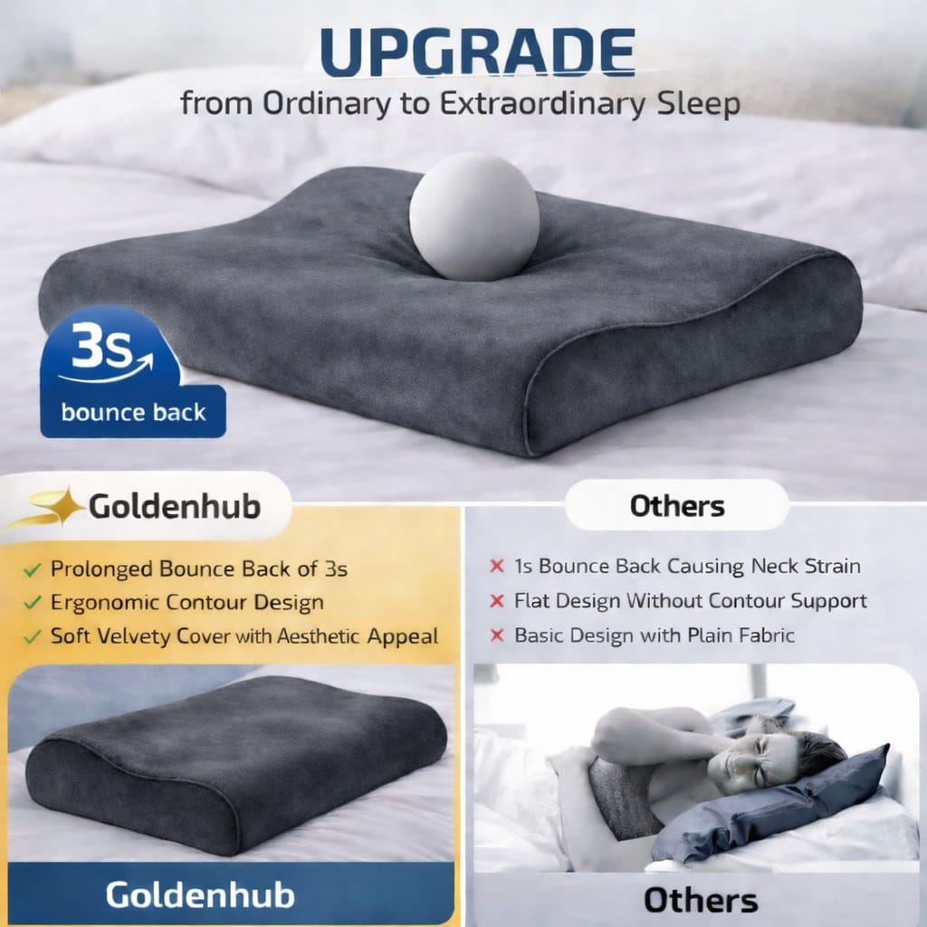 ✅Ergonomic Contour Design by Goldenhub: Scientifically crafted to provide perfect neck and spine alignment. Say goodbye to morning stiffness and discomfort