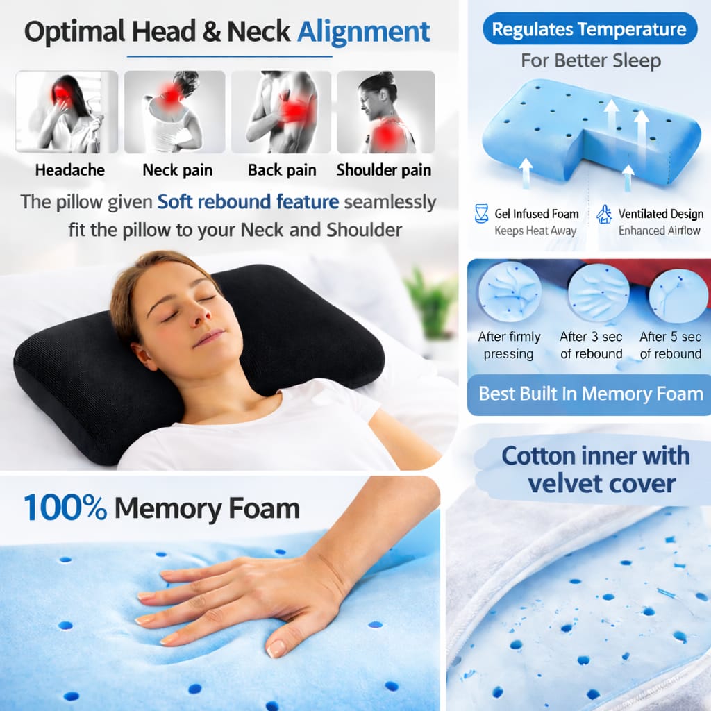 Goldenhub Orthopedic Memory Foam Pillow | Gel-Infused for Cooling | Ergonomic Support for Back & Side Sleepers | Velvet Cover with Inner Cover Size- 24 x 15 x 4.5/4 inch (Classic Design)